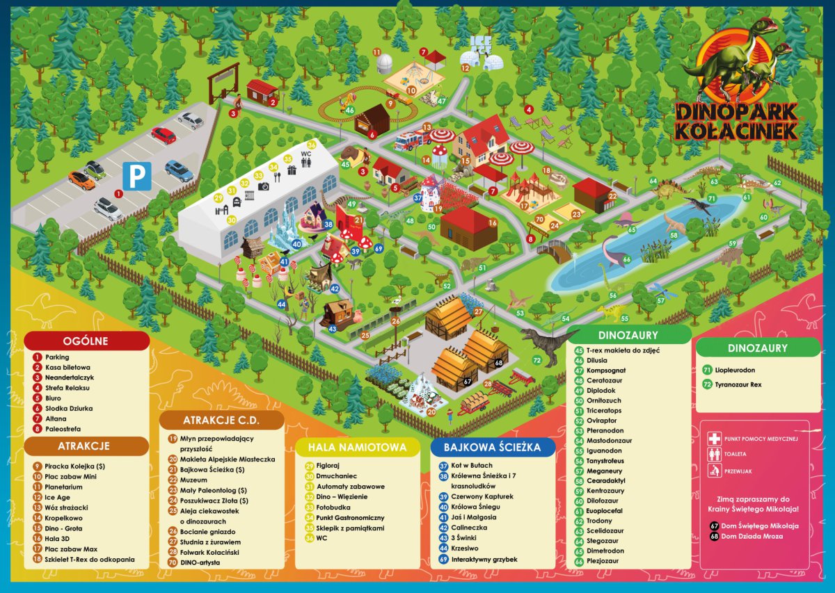 Dinopark w Kołacinku - Przenieś się do czasów, w których żyły ogromne, prehistoryczne gady. Przejdź ścieżką ery mezozoicznej i przekonaj się na własne oczy, jak interesujące to były zwierzęta. Spotkasz na niej naturalnej wielkości figury dinozaurów, wkomponowane w pięknie ukształtowany teren i dowiesz się wielu ciekawostek o ich życiu.