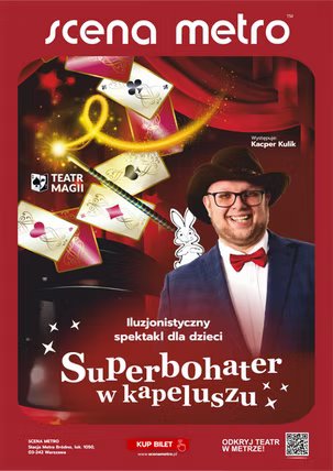 Zapraszamy Was na familijny pokaz iluzji dla całej rodziny! Kacper Kulik to prawdziwy superbohater, który posiadł aż dwie supermoce: moc czarowania oraz tę trudniejszą - moc rozśmieszania dzieci! Magiczny spektakl to połączenie zaskakujących sztuczek, humoru i ciągłej interakcji z publicznością. Dzieci pomagają mu przy niektórych trikach i same stają się małymi magikami!