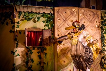 Pan Bajarz trafia do tajemniczego zamku, w którego katakumbach znajduje wielkie złote jajo. Wystraszony zamieszkującymi w zamczysku duchami ucieka i porzuca błyszczące znalezisko, które wpada w ręce złej wiedźmy. Wtem, na scenie pojawia się dobry duszek…